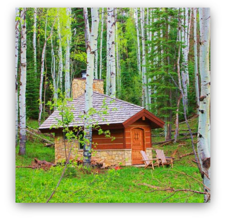 The trails you follow here can lead to other peaceful adventures. The wind chimes through the spruce, pine and aspen trees. Just off the trail, at a fork in the stream, you come to a remote cabin warmed by a wood-burning fireplace. The Hermitage is a woodland sanctuary where you can gather with an intimate few to take in the views and smell the trees; or perhaps, take some time alone and appreciate all you’ve experienced on your hike or ride, and just let the song of the stream refresh your spirit.