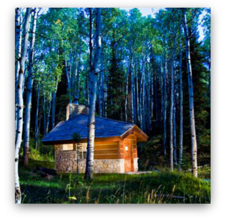 The trails you follow here can lead to other peaceful adventures. The wind chimes through the spruce, pine and aspen trees. Just off the trail, at a fork in the stream, you come to a remote cabin warmed by a wood-burning fireplace. The Hermitage is a woodland sanctuary where you can gather with an intimate few to take in the views and smell the trees; or perhaps, take some time alone and appreciate all you’ve experienced on your hike or ride, and just let the song of the stream refresh your spirit.